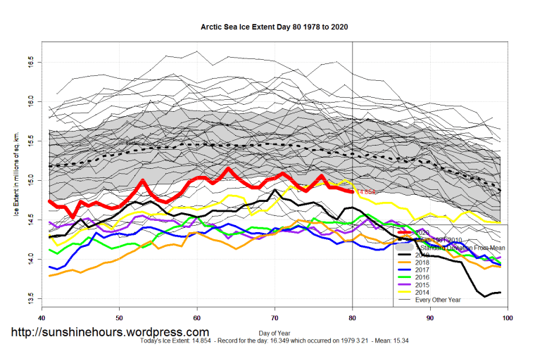 One thought on “Sea Ice Extent (Global Antarctic and Arctic) – Day 80 – 2020