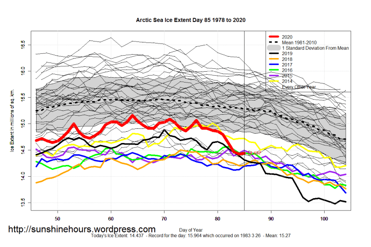 One thought on “Sea Ice Extent (Global Antarctic and Arctic) – Day 85 – 2020