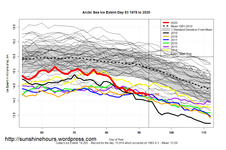 One thought on “Sea Ice Extent (Global Antarctic and Arctic) – Day 93 – 2020