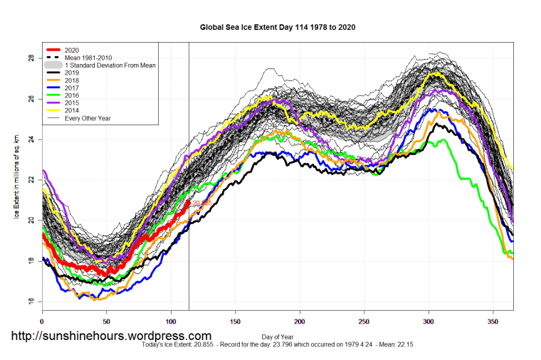 One thought on “Sea Ice Extent (Global Antarctic and Arctic) – Day 114 – 2020