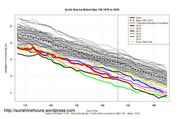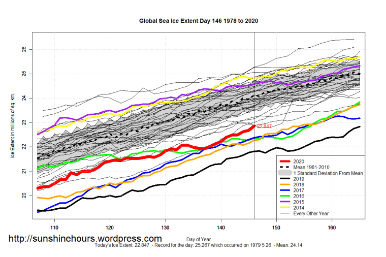 One thought on “Sea Ice Extent (Global Antarctic and Arctic) – Day 146 – 2020