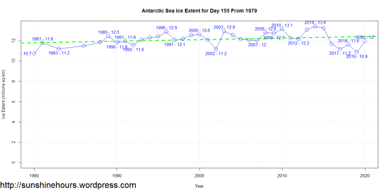 Antarctic Sea Ice Extent for Day 155 From 1979
