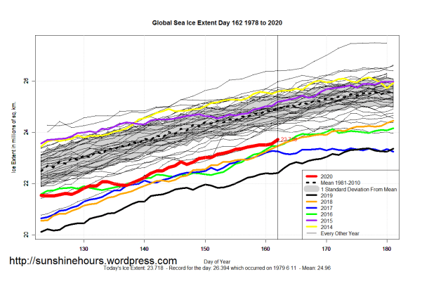 Sea Ice Extent (Global Antarctic and Arctic) – Day 162 – 2020