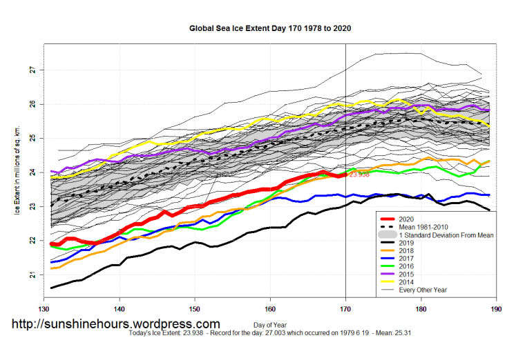 One thought on “Sea Ice Extent (Global Antarctic and Arctic) – Day 170 – 2020