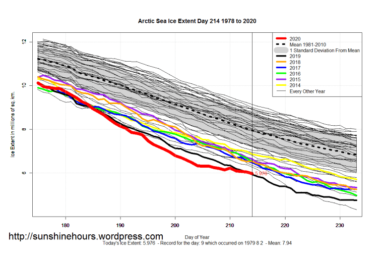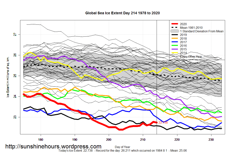 One thought on “Sea Ice Extent (Global Antarctic and Arctic) – Day 214 – 2020