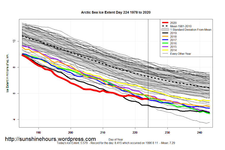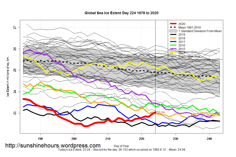 One thought on “Sea Ice Extent (Global Antarctic and Arctic) – Day 224 – 2020