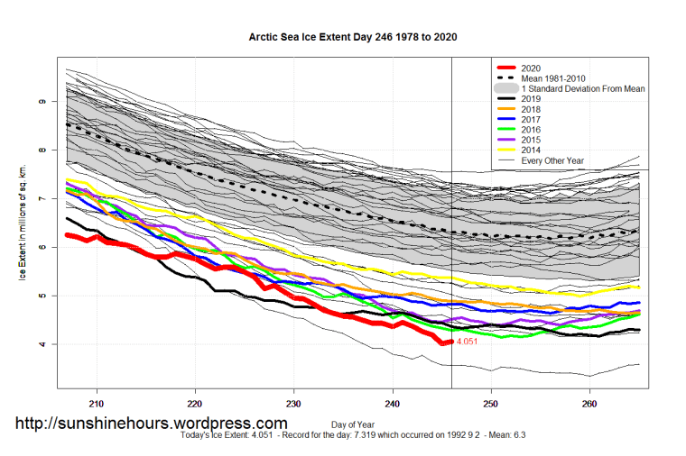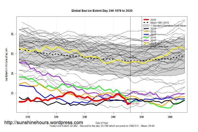 Sea Ice Extent (Global Antarctic and Arctic) – Day 246 – 2020 Published on September 3, 2020September 3, 2020 by sunshinehours1 South / North Like Loading... Related