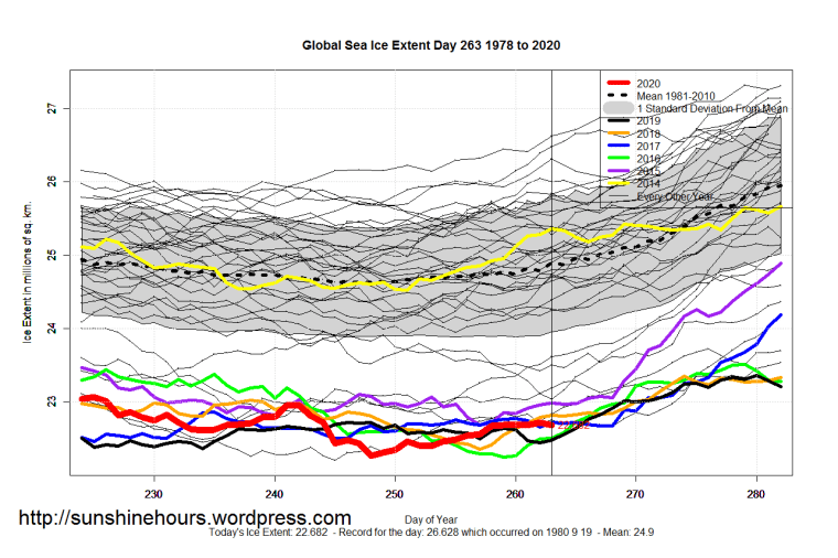 Sea Ice Extent (Global Antarctic and Arctic) – Day 263 – 2020 Published on September 20, 2020September 20, 2020 by sunshinehours1 South / North Like Loading... Related