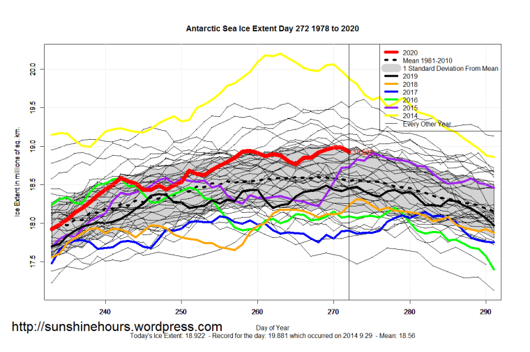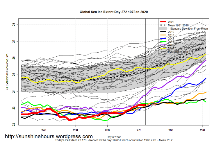 Sea Ice Extent (Global Antarctic and Arctic) – Day 272 – 2020 Published on September 29, 2020September 29, 2020 by sunshinehours1 South / North Like Loading... Related
