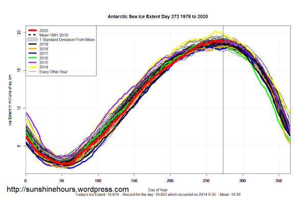 Sea Ice Extent (Global Antarctic and Arctic) – Day 273 – 2020
