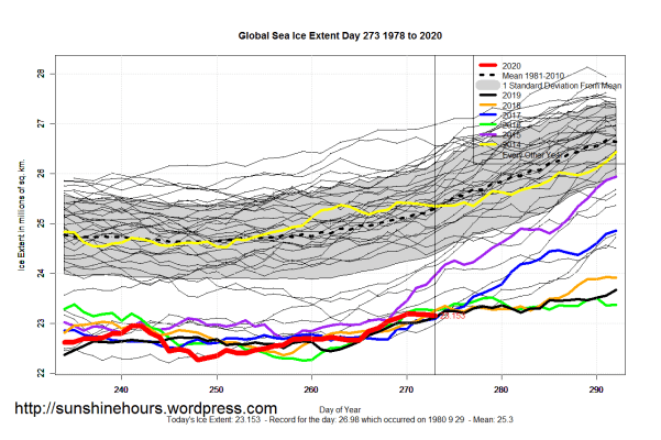Sea Ice Extent (Global Antarctic and Arctic) – Day 273 – 2020