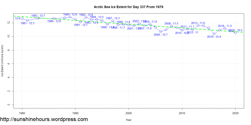 Sea Ice Extent (Global Antarctic and Arctic) – Day 337 2020