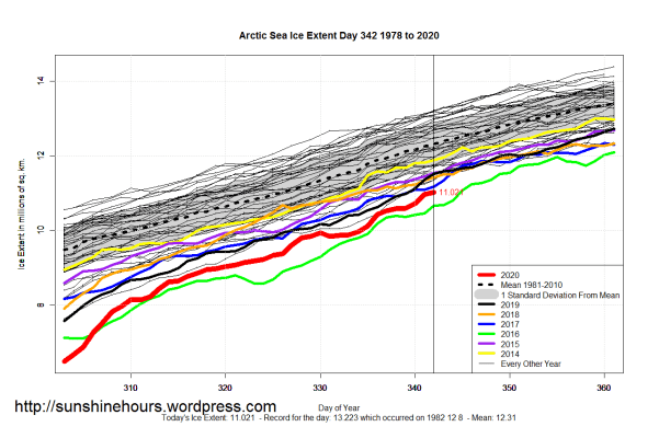 Sea Ice Extent (Global Antarctic and Arctic) – Day 342 2020
