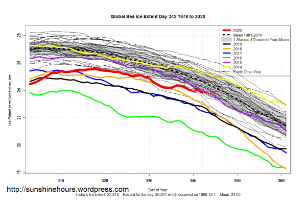 Sea Ice Extent (Global Antarctic and Arctic) – Day 342 2020