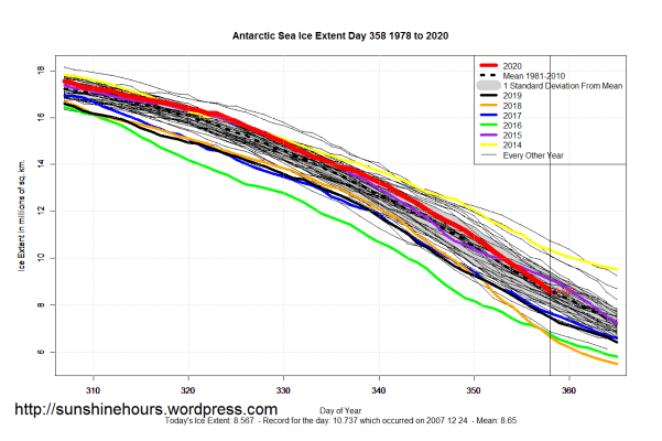 Sea Ice Extent (Global Antarctic and Arctic) – Day 358 2020