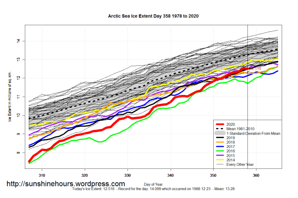 Sea Ice Extent (Global Antarctic and Arctic) – Day 358 2020
