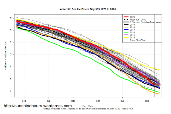 Sea Ice Extent (Global Antarctic and Arctic) – Day 363 – 2020