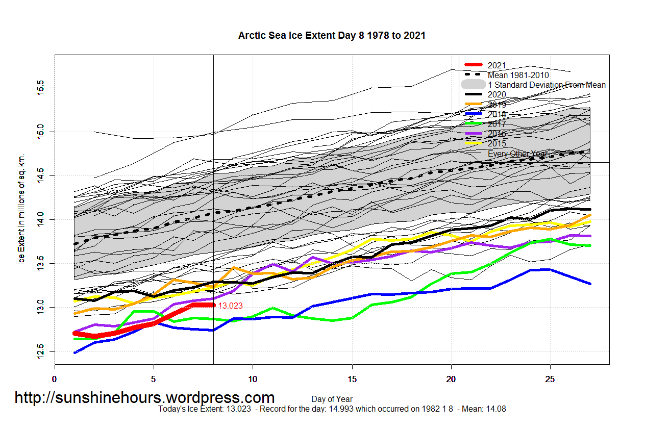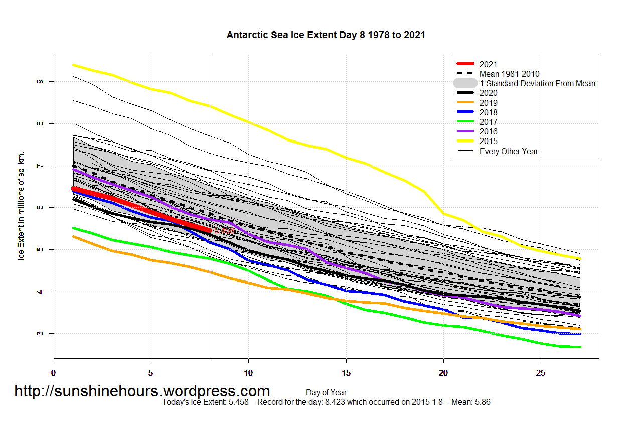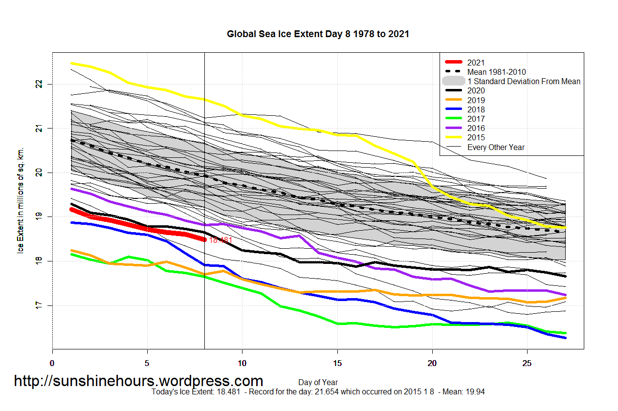 Sea Ice Extent (Global Antarctic and Arctic) – Day 8 – 2021 Published on January 9, 2021January 9, 2021 by sunshinehours1 South / North Like Loading... Related