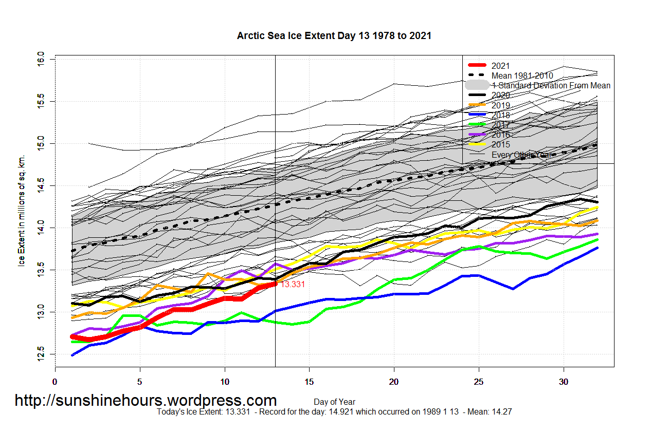 One thought on “Sea Ice Extent (Global Antarctic and Arctic) – Day 13 – 2021