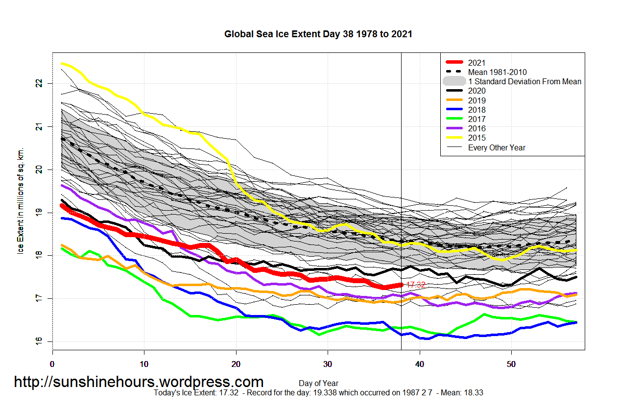 One thought on “Sea Ice Extent (Global Antarctic and Arctic) – Day 38 – 2021