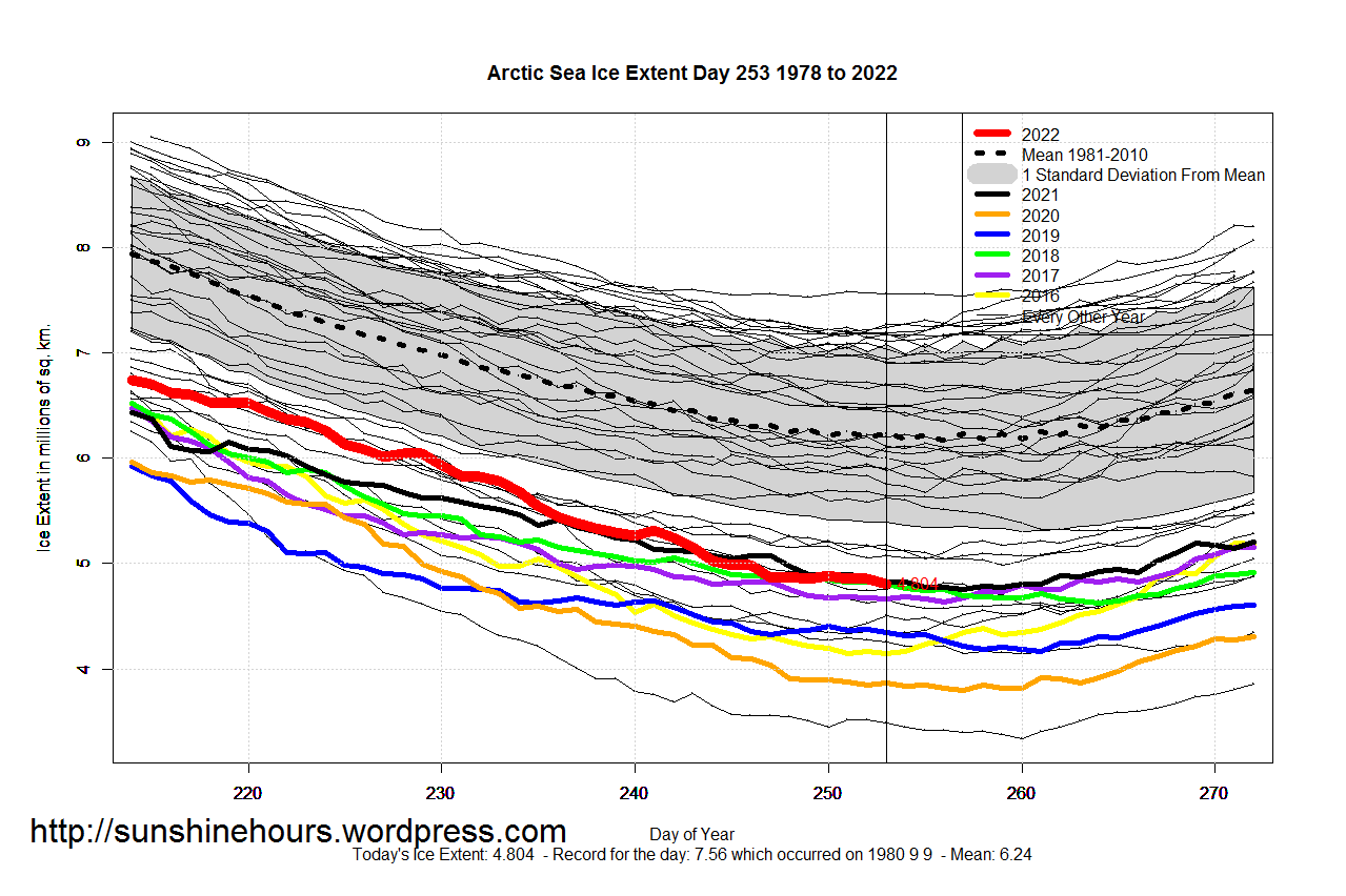 Sea Ice Extent (Global Antarctic and Arctic) – Day 253 – 2023 Published on September 11, 2022 by sunshinehours1 South / North Like Loading... Related