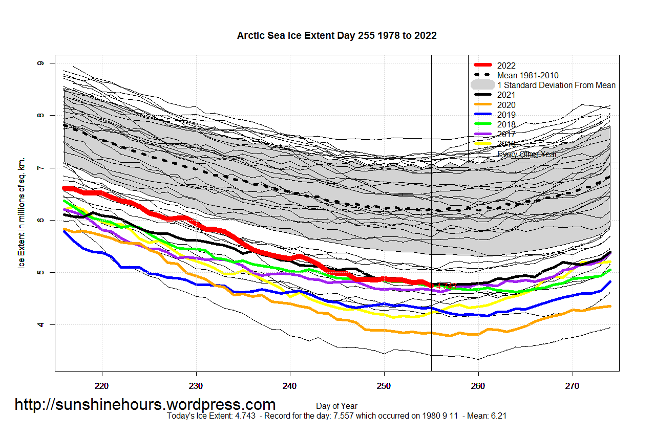 Sea Ice Extent (Global Antarctic and Arctic) – Day 255 – 2023 Published on September 13, 2022 by sunshinehours1 South / North Like Loading... Related