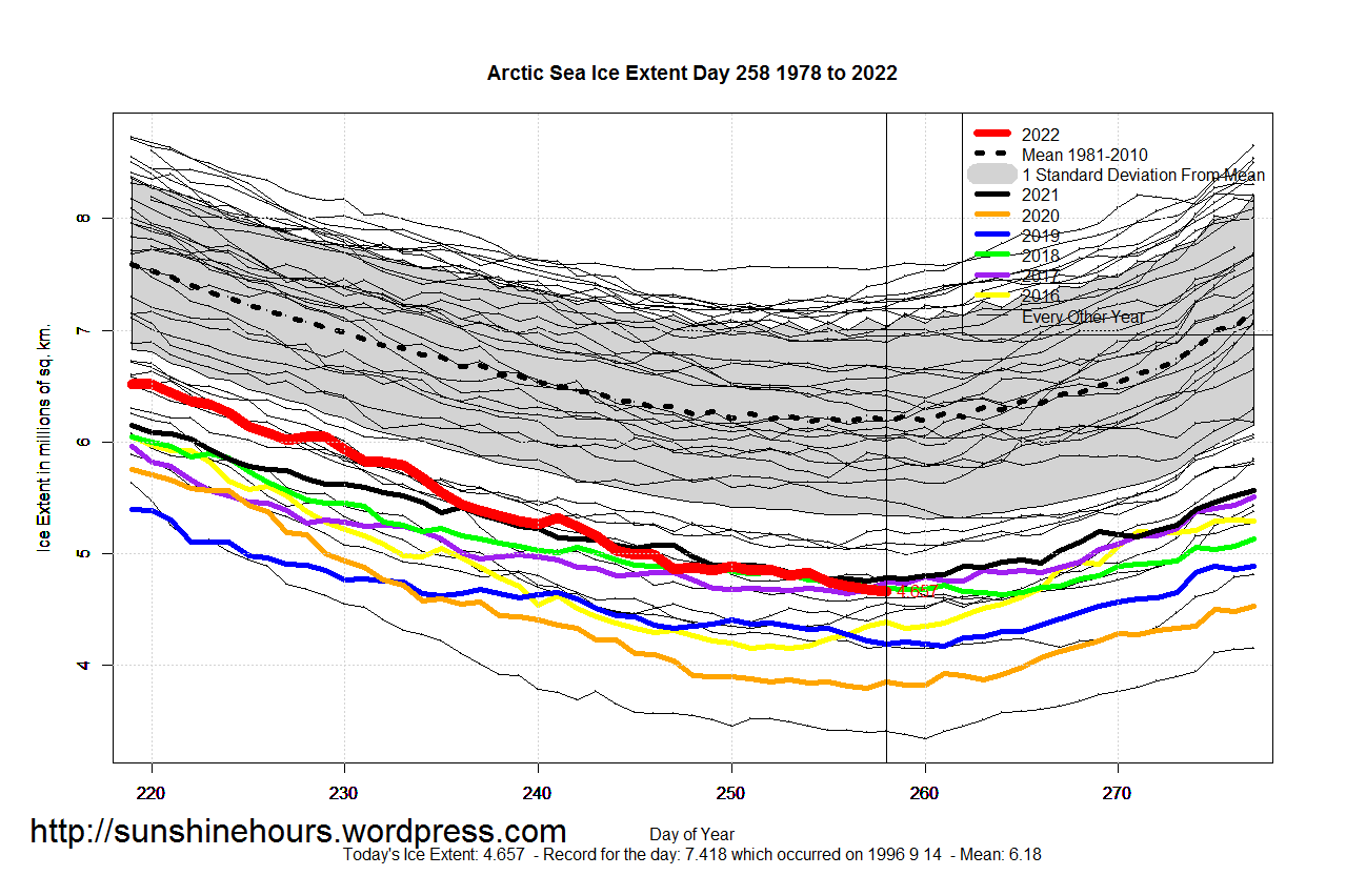 One thought on “Sea Ice Extent (Global Antarctic and Arctic) – Day 258 – 2023