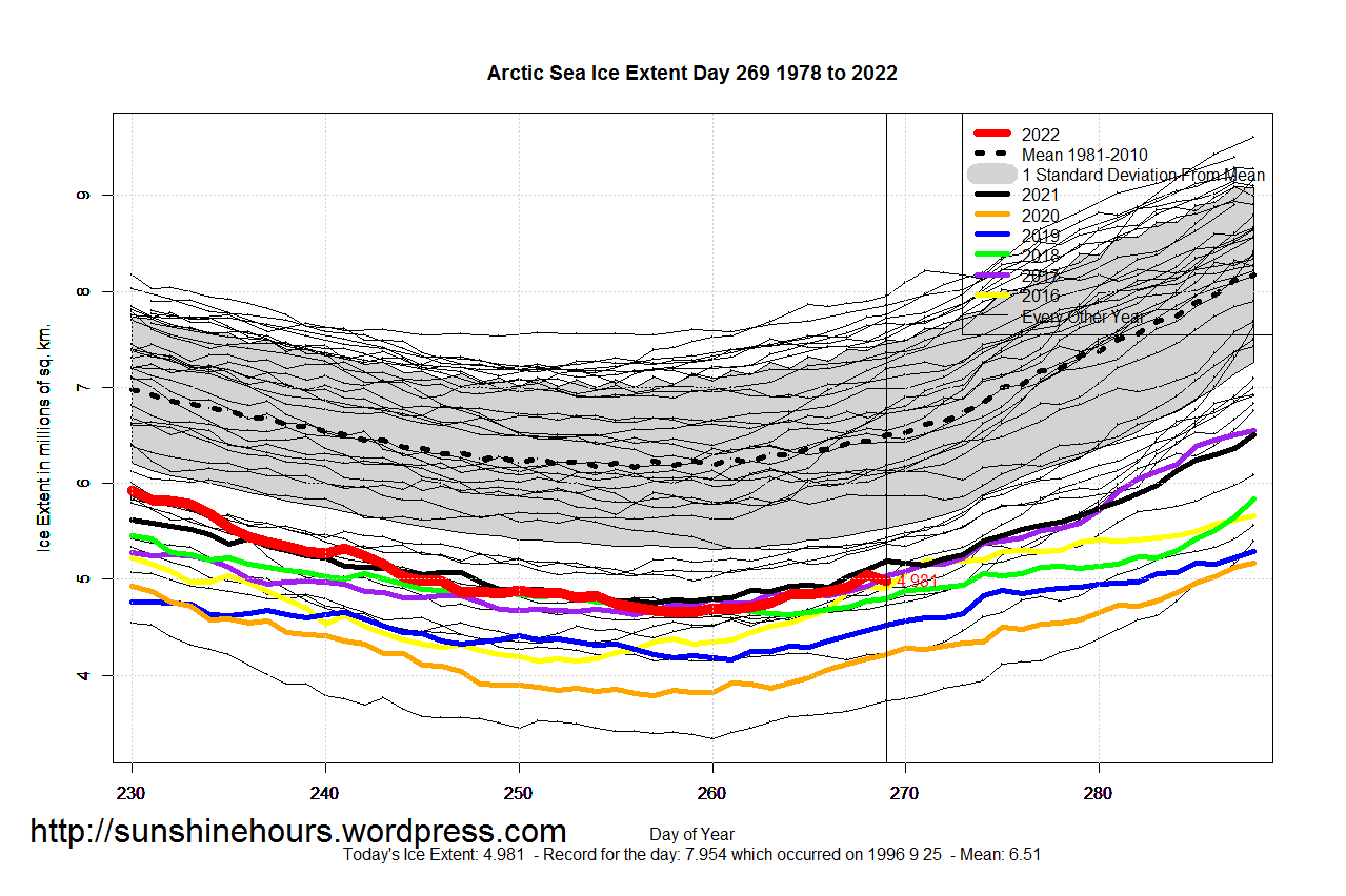 Sea Ice Extent (Global Antarctic and Arctic) – Day 269 – 2023 Published on September 27, 2022 by sunshinehours1 South / North Like Loading... Related