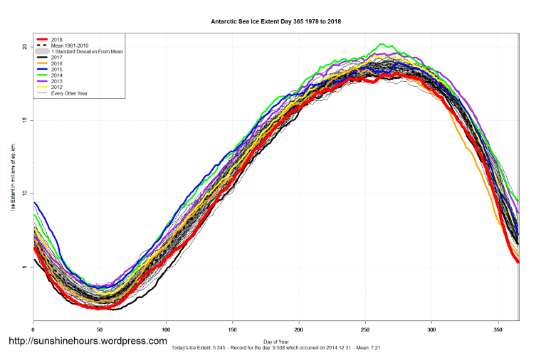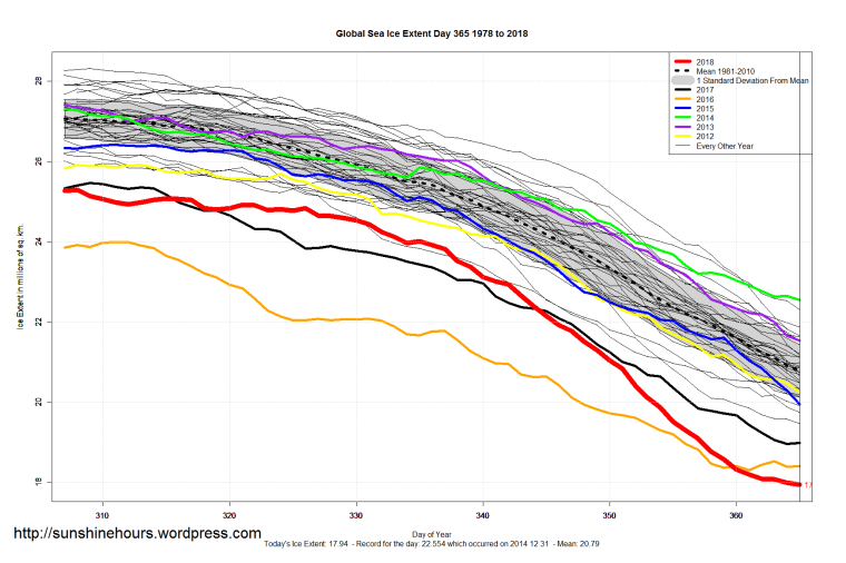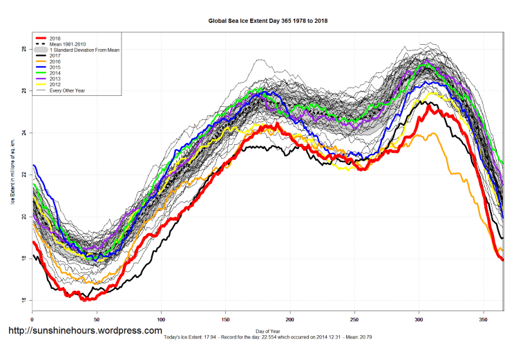 Sea Ice Extent (Global Antarctic and Arctic) – Day 365 – 2018 Published on January 1, 2019January 1, 2019 by sunshinehours11 Comment South / North