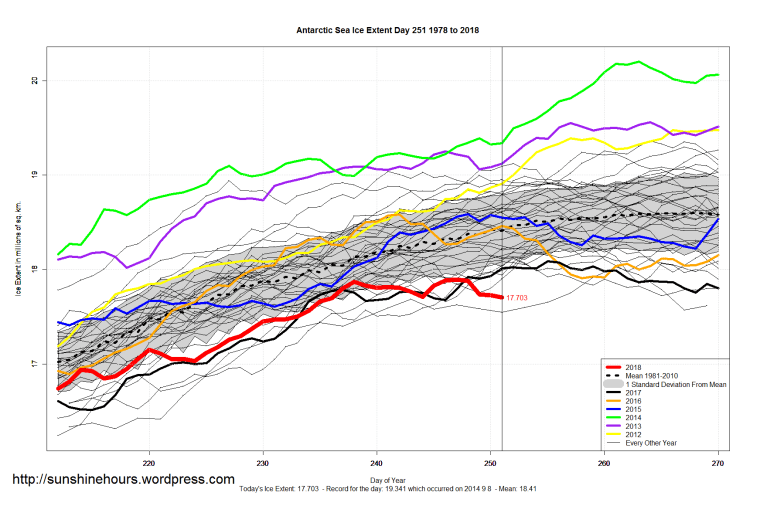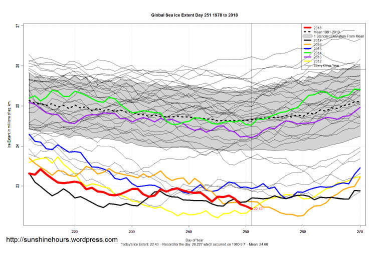 Sea Ice Extent (Global Antarctic and Arctic) – Day 251 – 2018 Published on September 9, 2018September 9, 2018 by sunshinehours11 Comment South / North