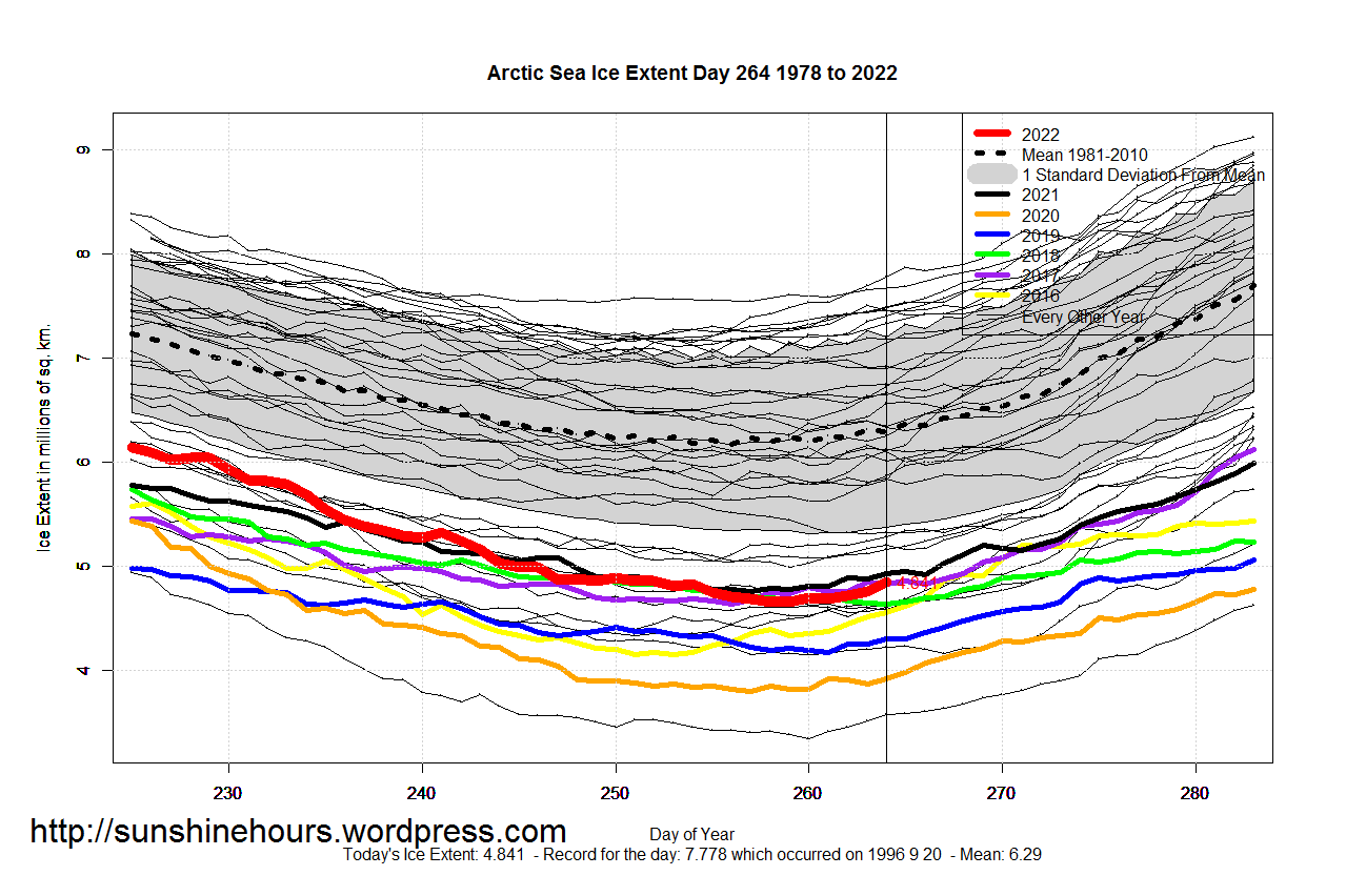 Sea Ice Extent (Global Antarctic and Arctic) – Day 264 – 2023