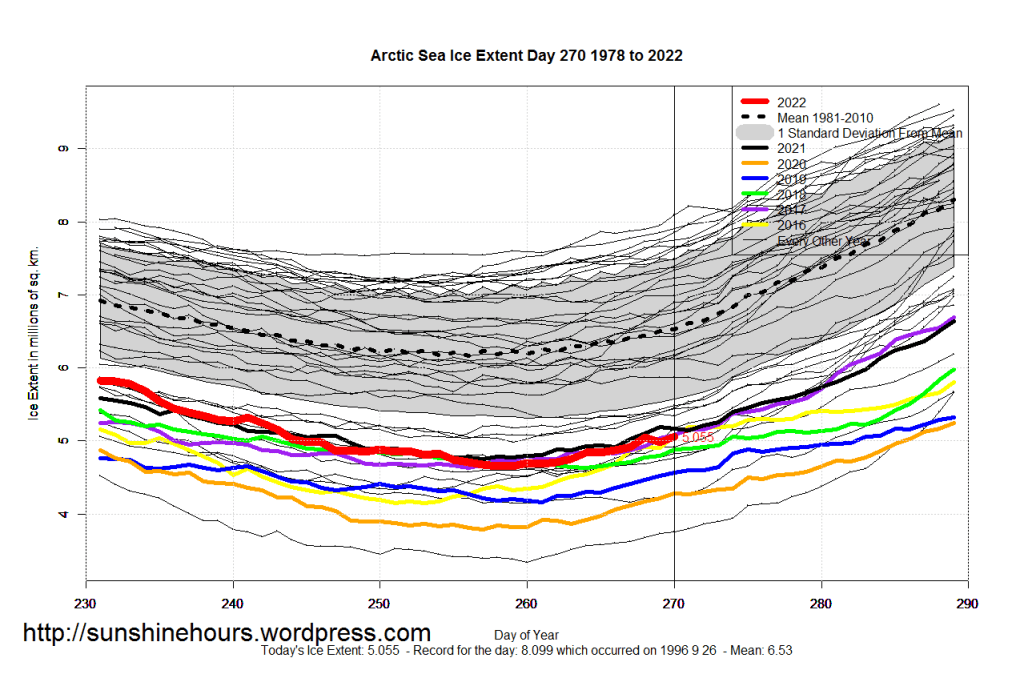 Sea Ice Extent (Global Antarctic and Arctic) – Day 270 – 2022