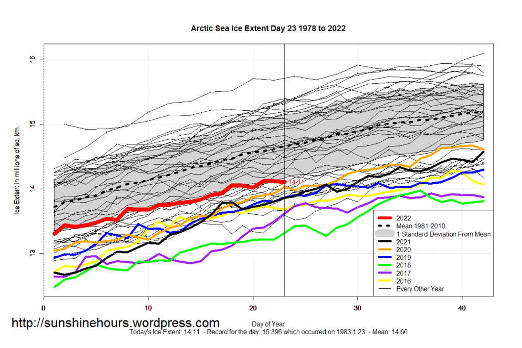 Sea Ice Extent (Global Antarctic and Arctic) – Day 23 – 2022 Published on January 24, 2022January 24, 2022 by sunshinehours11 Comment . South / North