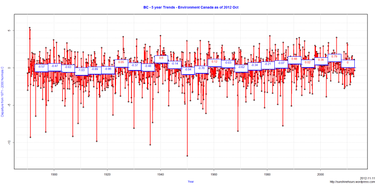 Some of the BC stations have “normals” (anomalies) calculated by EC based on the 1971-2000 average. (The D column in the summaries).
