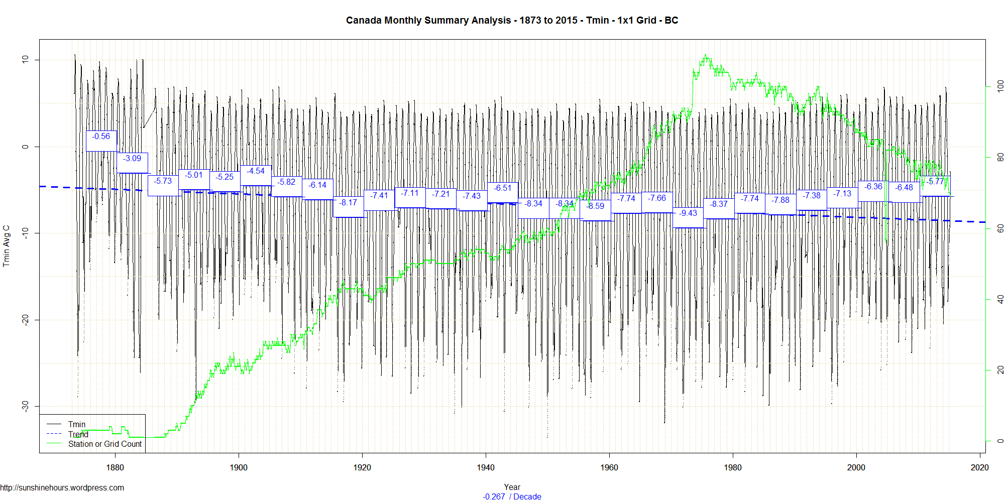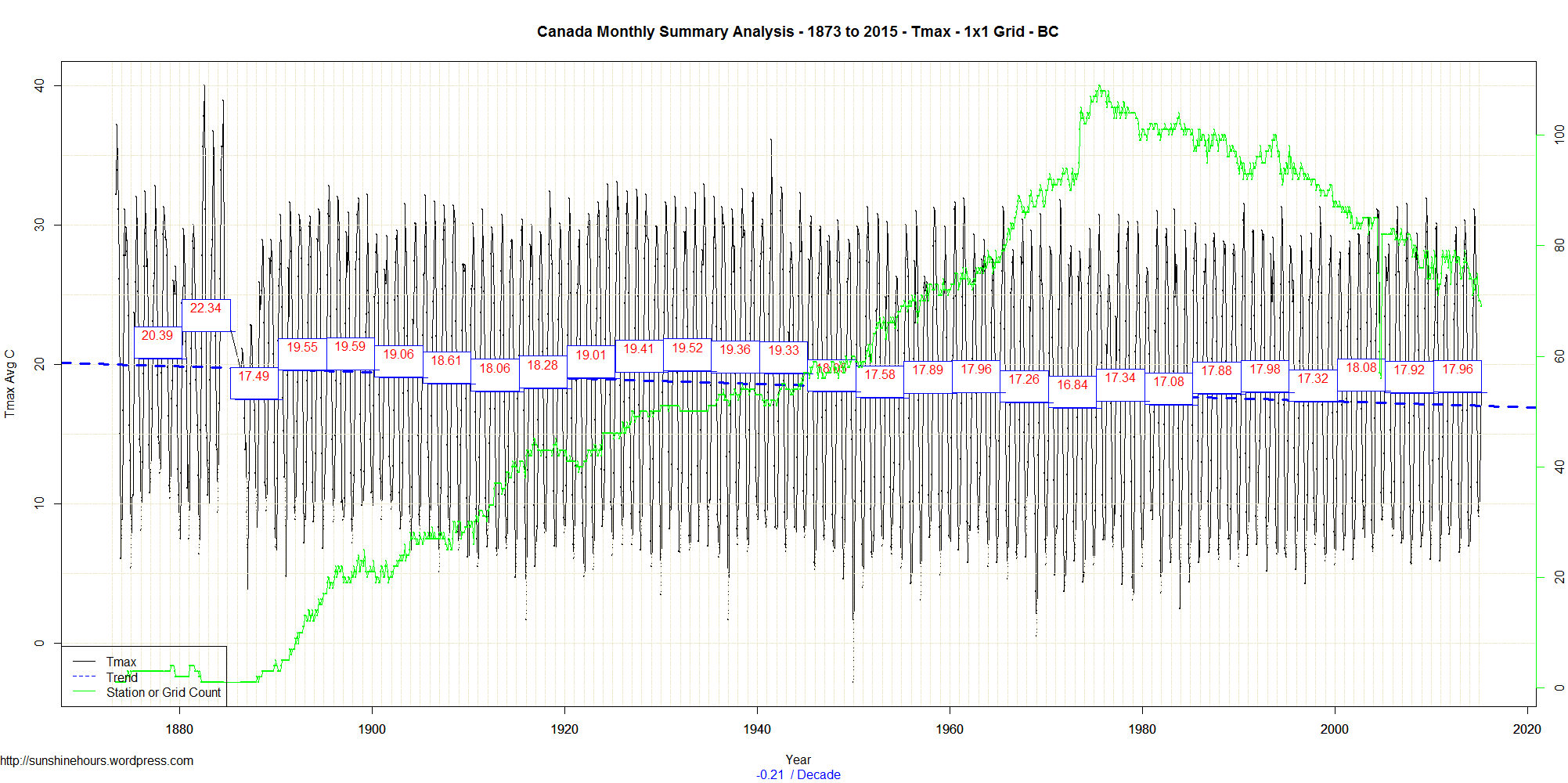 This a followup to this post: British Columbia Canada Tmax , Tmin and Tmean from 1873 (On 1×1 Grid)