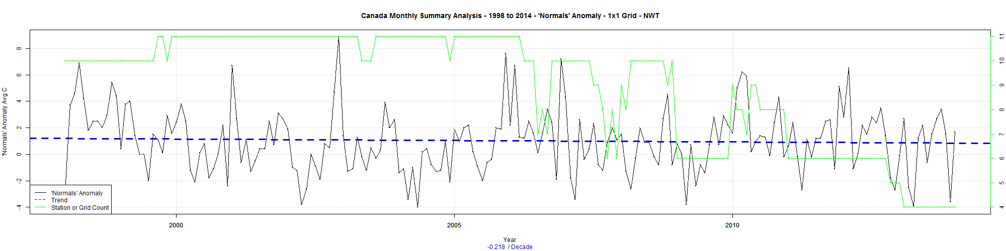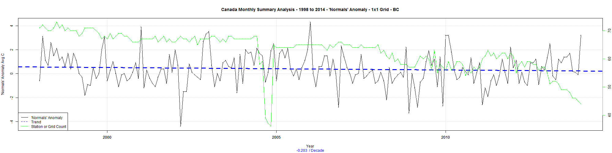 Some of the BC stations have “normals” (anomalies) calculated by EC based on the 1971-2000 average. (The D column in the summaries).