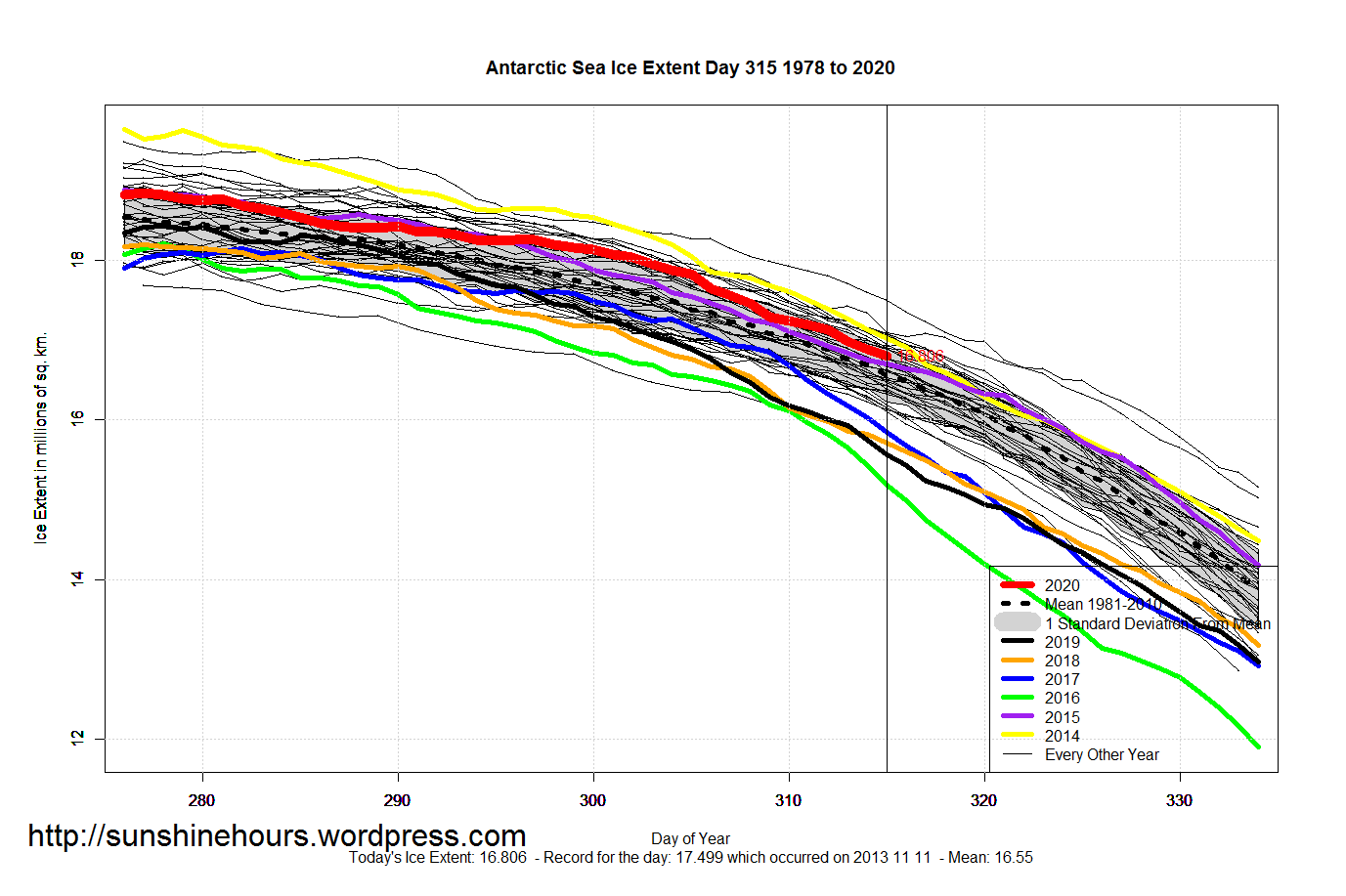Sea Ice Extent (Global Antarctic and Arctic) – Day 317 – 2020 Published on November 13, 2020 by sunshinehours15 Comments South / North