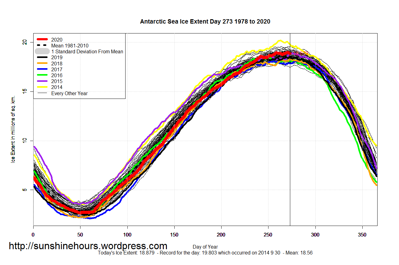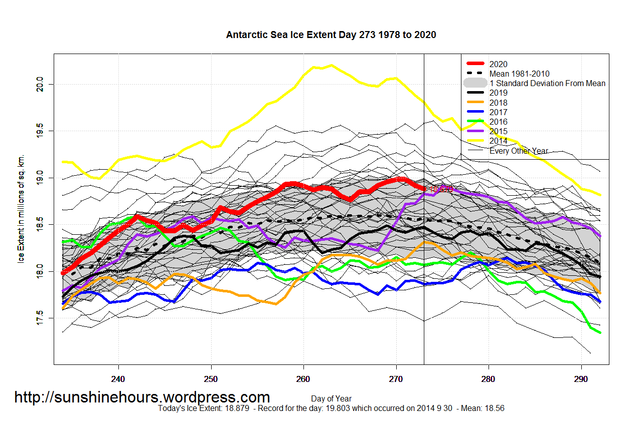 Sea Ice Extent (Global Antarctic and Arctic) – Day 273 – 2020 Published on September 30, 2020September 30, 2020 by sunshinehours11 Comment South / North