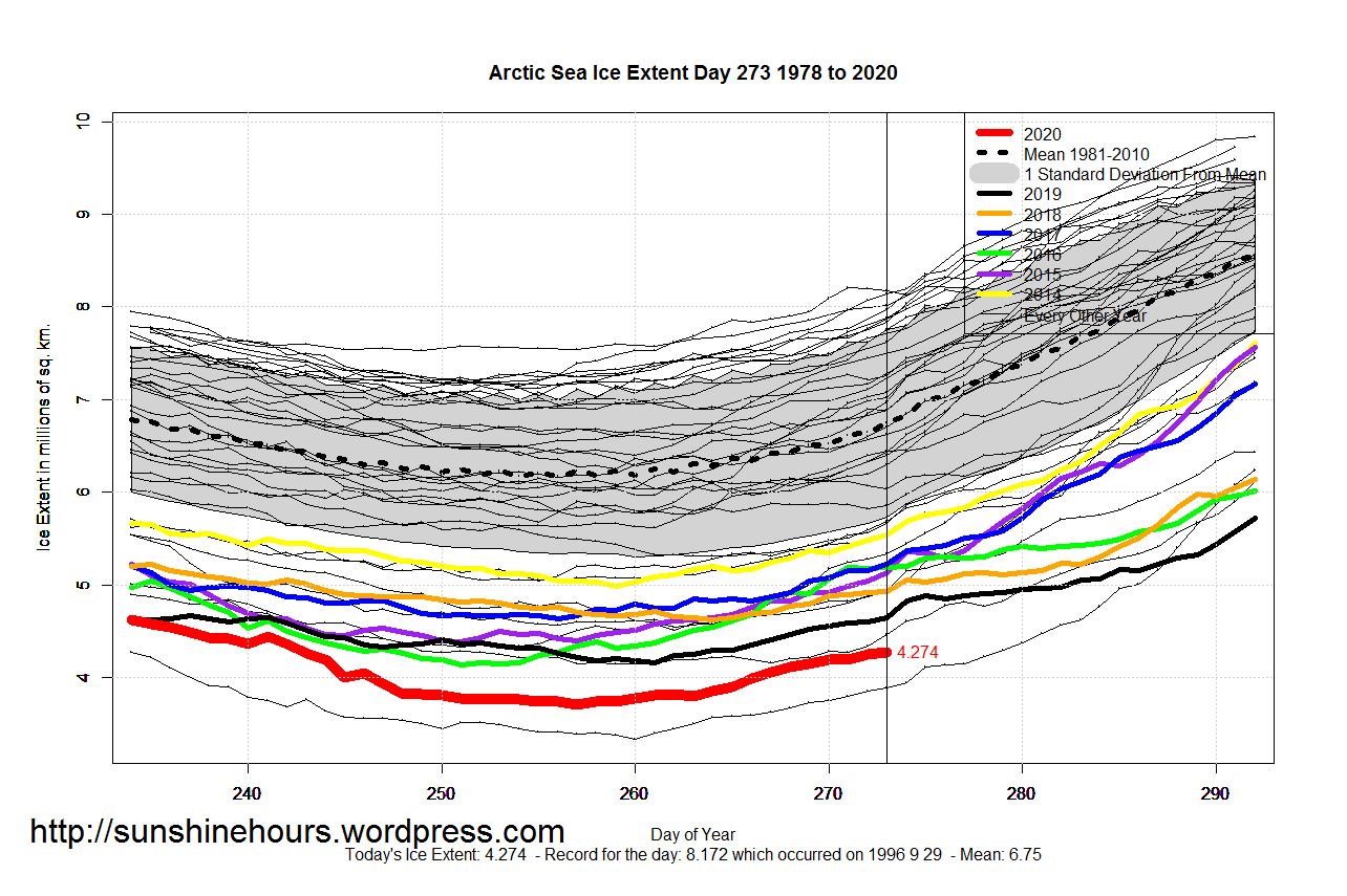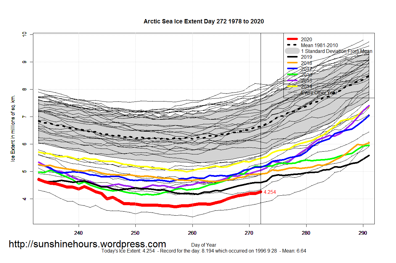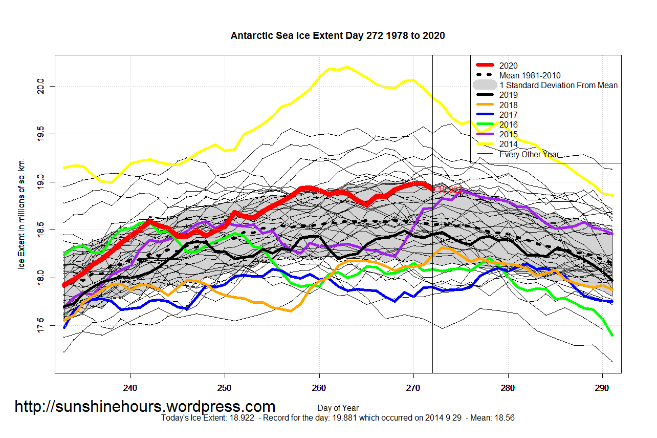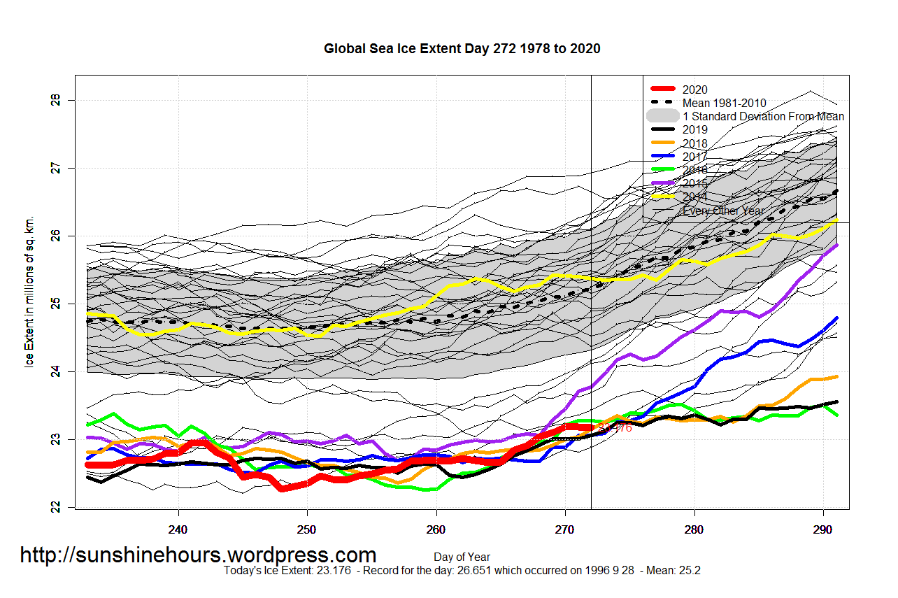 Sea Ice Extent (Global Antarctic and Arctic) – Day 272 – 2020 Published on September 29, 2020September 29, 2020 by sunshinehours11 Comment South / North