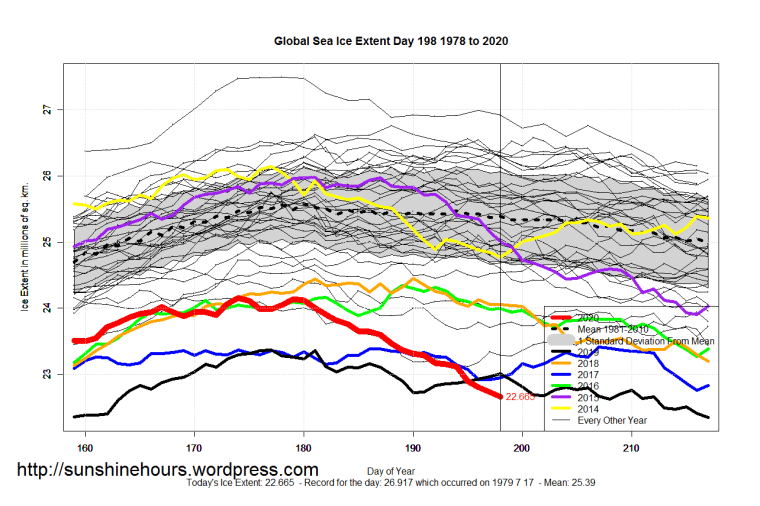Sea Ice Extent (Global Antarctic and Arctic) – Day 198 – 2020 Published on July 17, 2020July 17, 2020 by sunshinehours14 Comments South / North