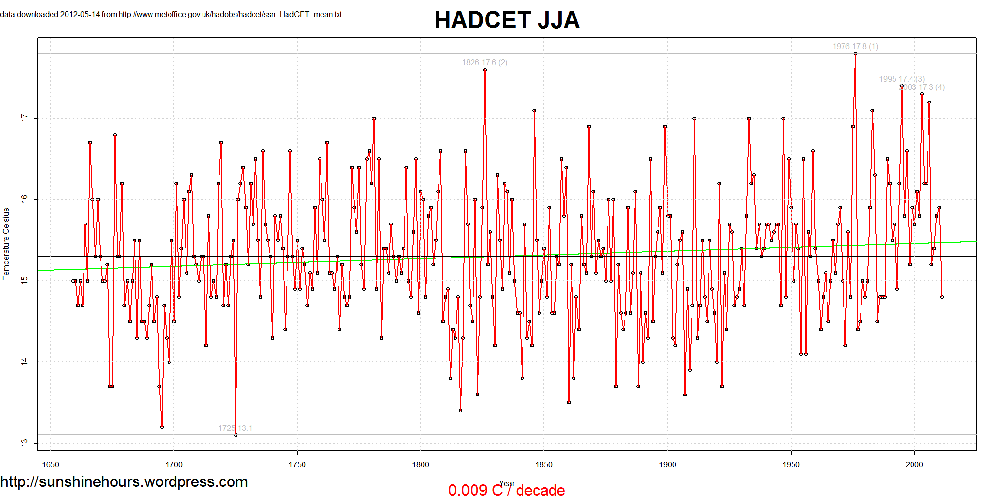 They were not hotter than previous years. They were just not interspersed with cold May’s. The two cold May’s in 2010 and 2013 are a return to normal with cold and hotter May’s occurring beside each other.