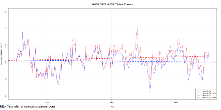 IPCC predicted .2C per decade. HADCRUT4 has been created to change the negative trend of HADCRUT3 to a positive one.