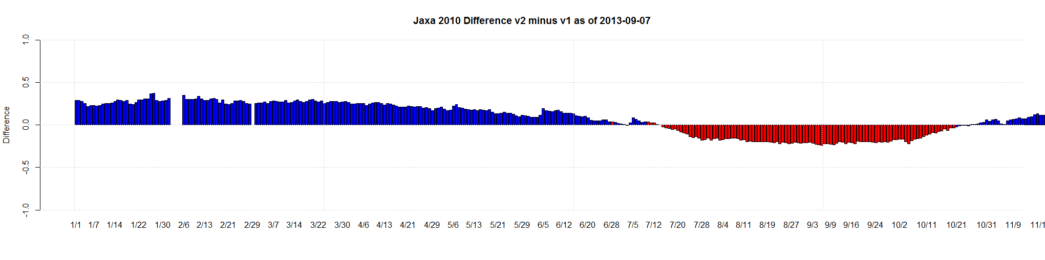 Yesterday I graphed the difference between JAXA version 1 and version 2 here and here.