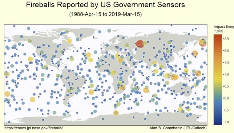 The giant fireball hit at 2350 GMT on 18 December over the Bering Sea, a part of the Pacific Ocean between Russia and Alaska. Peter Brown at the University of Western Ontario, Canada, spotted the meteor in measurements picked up by at least 16 monitoring stations globally. The meteor was 10 metres in diameter, had a mass of 1400 tonnes and impacted with an energy of 173 kilotons of TNT, he wrote on Twitter.