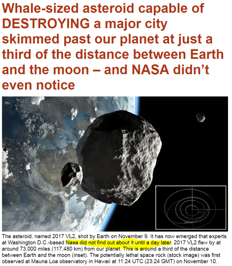 Maybe NASA might have given more than 6 hours warning if it wasn’t squandering billions a year on the AGW cult.