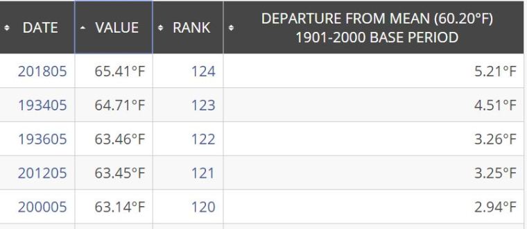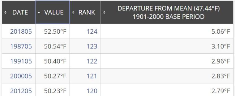 May 2018 in the USA was 2nd highest maximum temperature for May.
