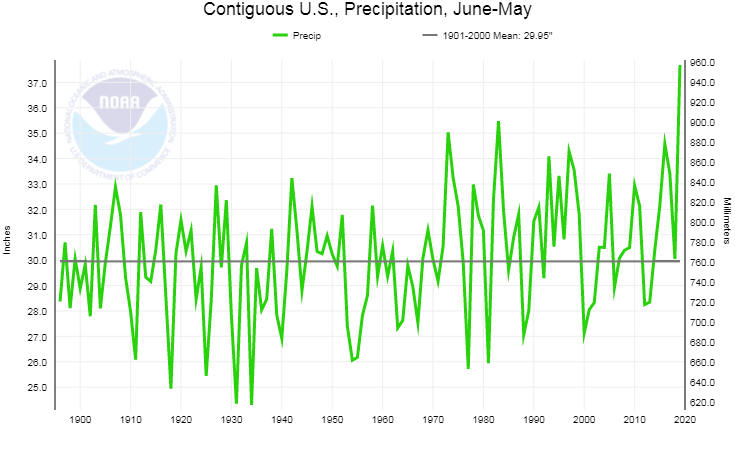Wettest June to May (12 months) by 2.21 inches – All the dark green ones are state records.