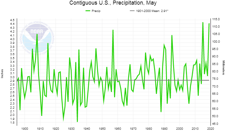 May 2018 in the USA was 2nd highest maximum temperature for May.