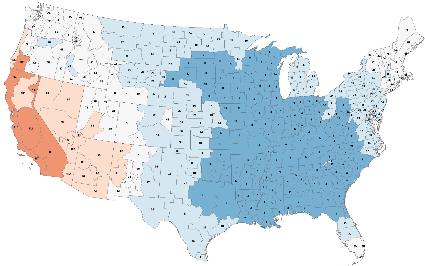 Only 6 States in the top 10. Only 9 in the top 20. 27 out of 48 have a rank of less than 61 (the middle of 121).