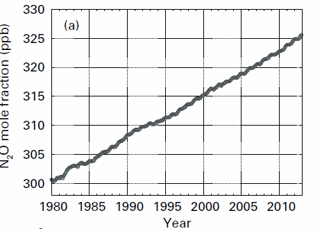 3. What about N2O which contributes 6% of the radiative forcing? Nope.